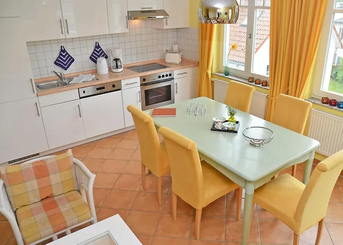 Die Villa bietet eine Essecke und einen Essbereich im Freien mit Ausstattung zur Kaffee- & Teezubereitung. Zur Selbstverpflegung stehen auch eine Mikrowelle, eine Kaffee-/Teemaschine und Küchenutensilien zur Verfügung. Diese Unterkunft liegt in circa 5 Gehminuten Entfernung vom Restaurant Carlson's Literaturcafe Rugen und bietet Gerichte der deutsche Küche an. Die Bushaltestelle Binz Ortsmitte befindet sich vor dieser Villa und bietet alternative Transportmöglichkeiten in der Umgebung.